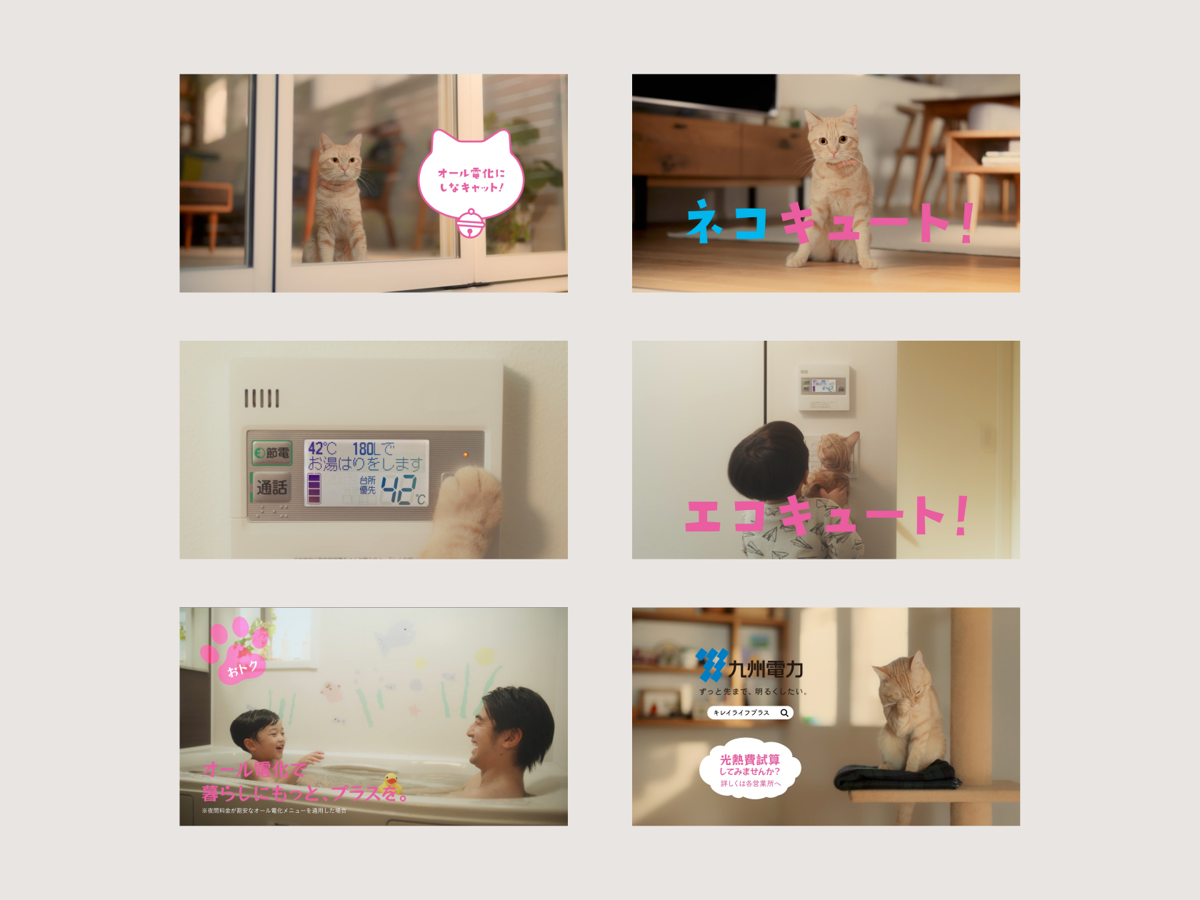 九州電力「オール電化にしなキャット」[テレビCM/動画・ムービー/デジタルサイネージ/ブランディング/ロゴ/パンフレット/ポスター/フライヤー]制作実績