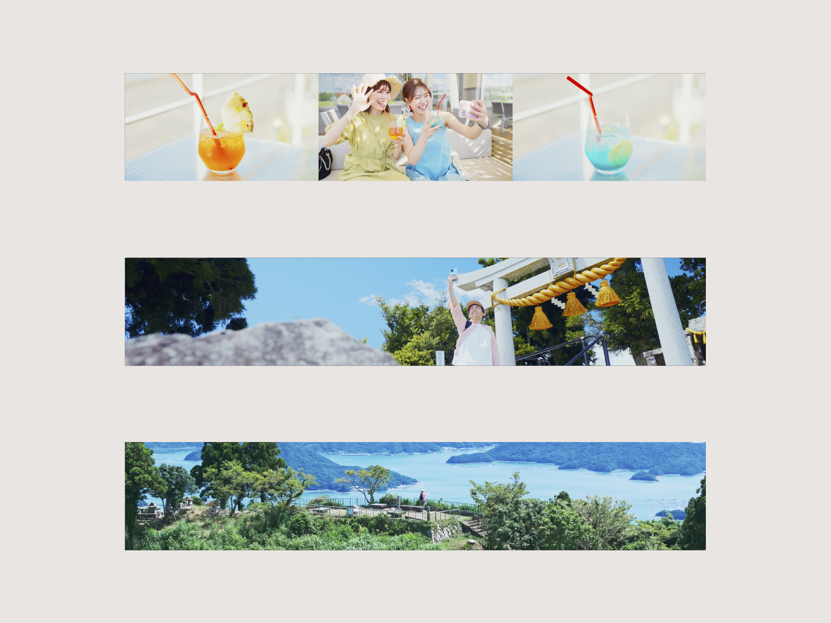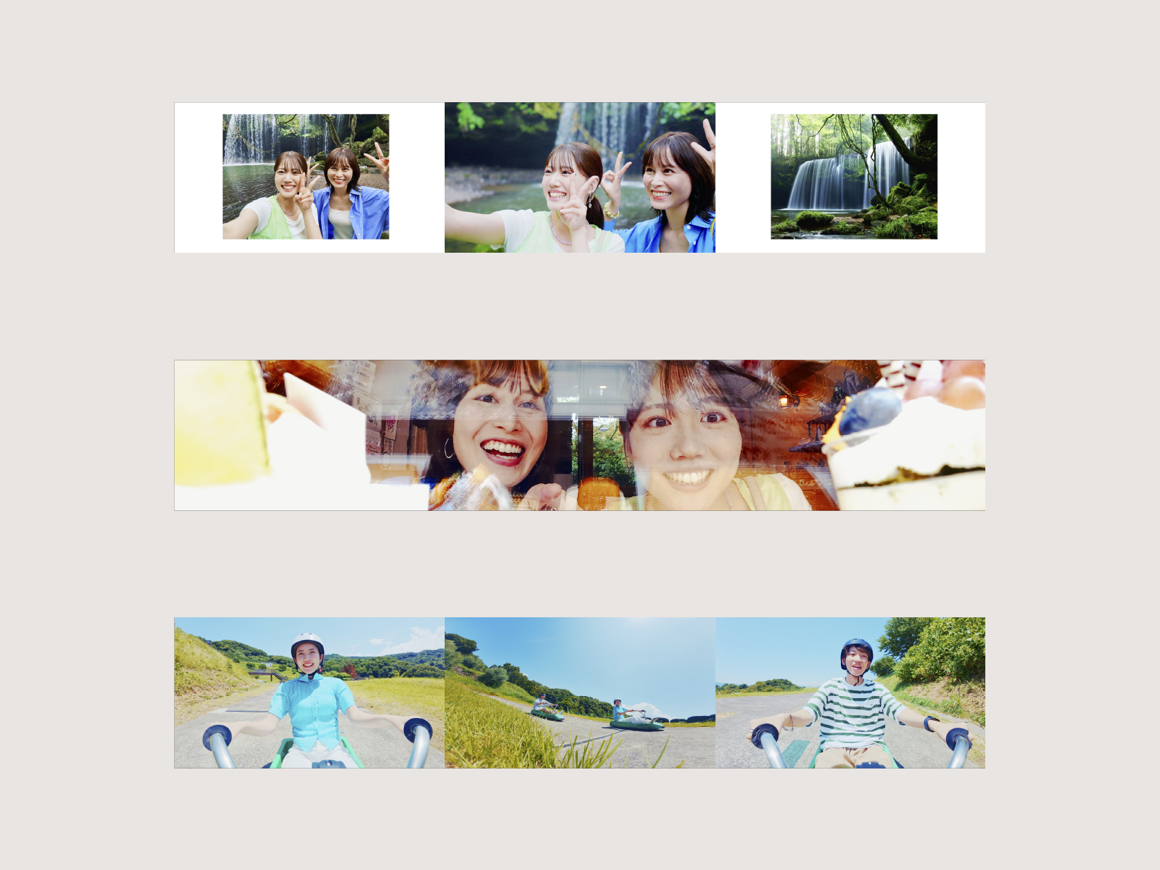 16:9を3画面横に並べた超横長サイズで熊本県内の絶景を紹介。迫力ある映像です。